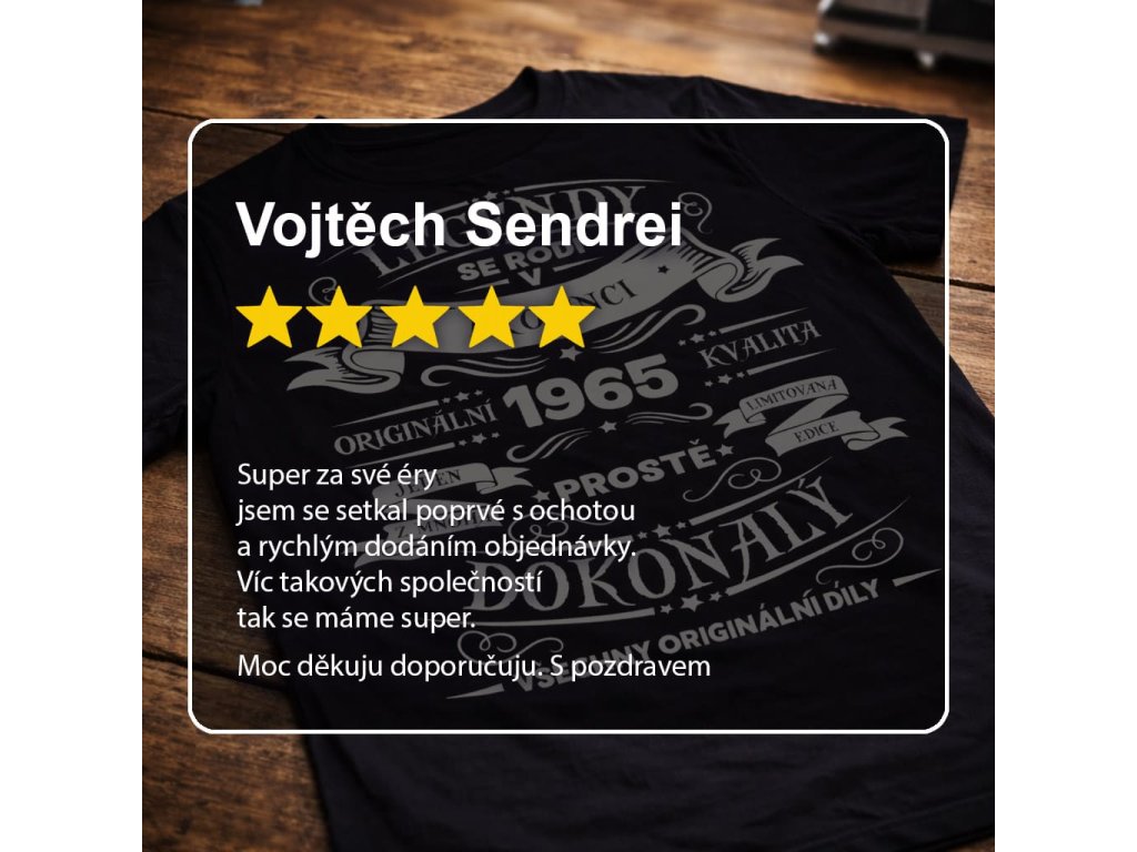 Tričko „Legendy se rodí…“ je určené jako narozeninový dárek pro muže, u kterých se chce říct něco hezkého, ale bez přehánění. Text je jednoduchý a pochopitelný – dává najevo úctu, nadhled i lehký humor. Hodí se pro syna, partnera, kamaráda, tátu i dědu.