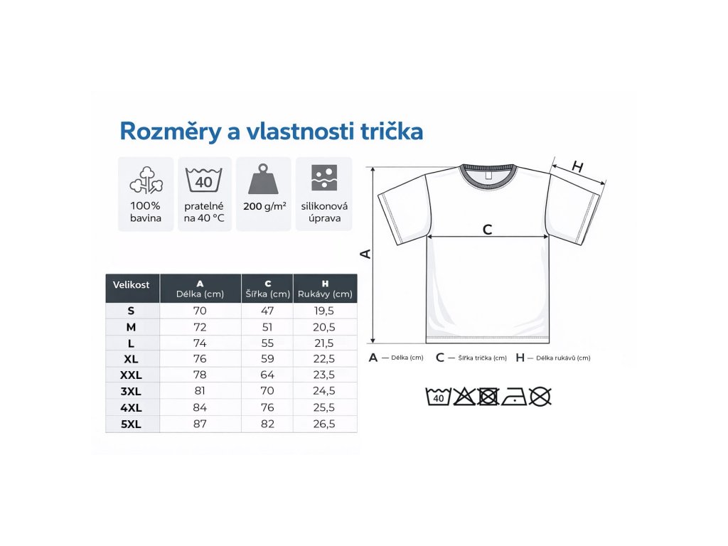 Tričko je vyrobené ze 100% bavlny o gramáži 200 g/m², takže je pevné, ale zároveň pohodlné na každodenní nošení. Není to jen „tričko do skříně“, ale kousek, který se běžně nosí.