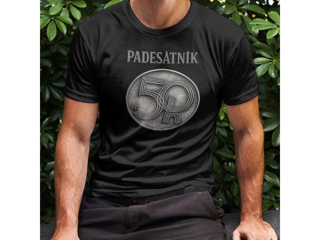 Oslav padesátiny s humorem! Pánské tričko Padesátník s realisticky kresleným starým padesátníkem (haléřem), který už dnes v oběhu nenajdeš, dokonale vystihuje situaci, kdy člověk poprvé „oficiálně zestárne“. Skvělý dárek pro oslavence, který bere věk s nadhledem.